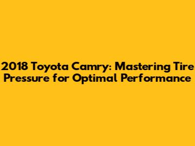 Hey car enthusiasts! Let's dive deep into a crucial aspect of your 2018 Toyota Camry's performance and safety: tire pressure. Understanding and maintaining the correct tire pressure isn't just about avoiding a flat tire; it significantly impacts your car's fuel efficiency, handling, and the lifespan of your tires. This guide will walk you through everything you need to know about the 2018 Camry's tire pressure, ensuring you get the most out of your ride. So, buckle up, and let's get started!
