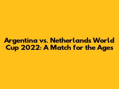 Argentina Vs. Netherlands: Epic World Cup Clash
