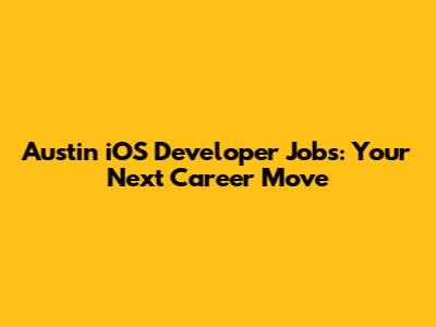 Austin IOS Developer Jobs: Your Next Career Move