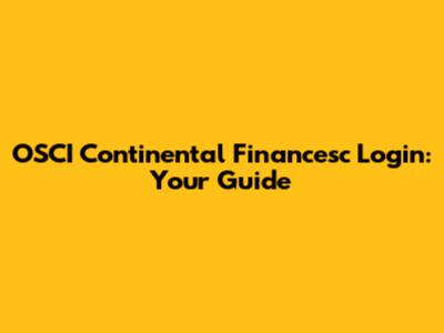 OSCI Continental Financesc Login: Your Guide