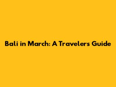 Tips for Visiting Bali in March
