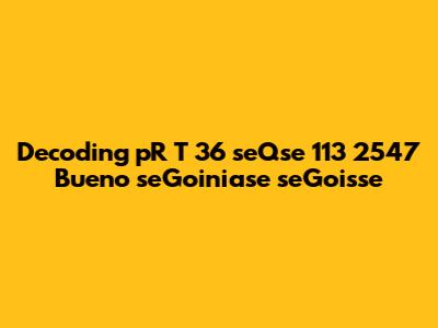 Decoding PR T 36 SeQse 113 2547: A Comprehensive Guide