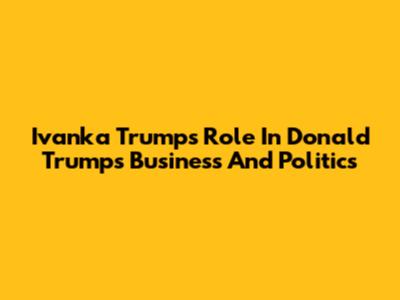 Ivanka Trump's Role In Donald Trump's Business And Politics