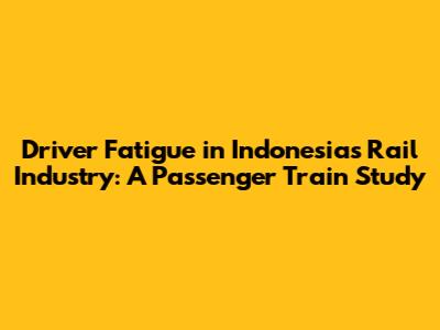 Driver Fatigue In Indonesia's Rail Industry: Passenger Train Study