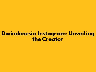 Dwindonesia Instagram: Unveiling The Creator