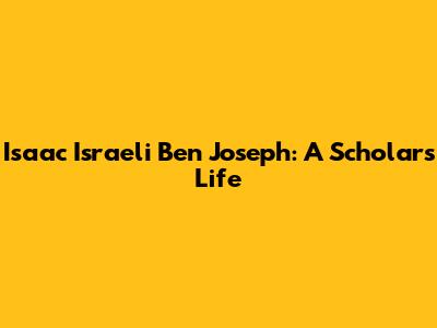 Isaac Israeli Ben Joseph: A Scholar's Life
