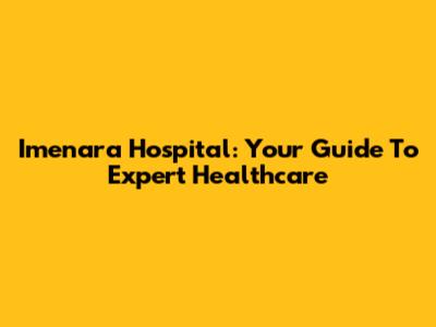 Imenara Hospital: Your Guide To Expert Healthcare