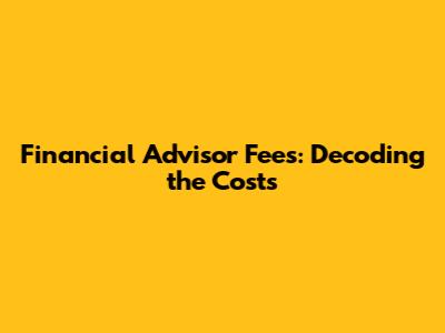 Financial Advisor Fees: What You Need To Know