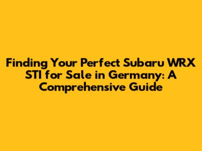 Hey guys! So, you're on the hunt for a Subaru WRX STI for sale in Germany, huh? Awesome choice! The STI is a legendary car, known for its incredible performance, rally-bred handling, and iconic boxer engine rumble. But finding the right one in Germany can feel like navigating the Nürburgring blindfolded. Don't worry, though; I'm here to give you the ultimate guide to help you find your dream STI and get you tearing up those Autobahns. We'll cover everything from where to look and what to look for, to the important stuff like import regulations and maintenance tips. Let's dive in!