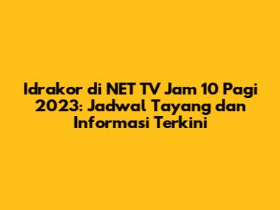 Pecinta drama Korea atau yang akrab disapa idrakor, pasti sudah tidak asing lagi dengan NET TV. Stasiun televisi ini memang rajin menayangkan drama-drama Korea populer yang selalu sukses bikin baper. Nah, buat kamu yang penasaran dengan jadwal idrakor NET TV jam 10 pagi di tahun 2023, yuk simak ulasan lengkapnya di artikel ini!