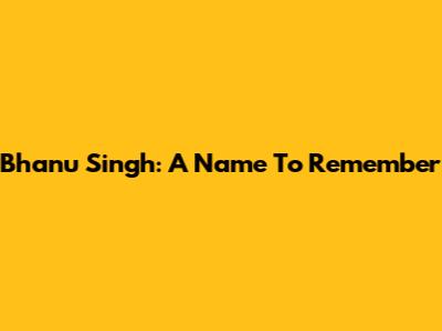 Bhanu Singh: A Name To Remember