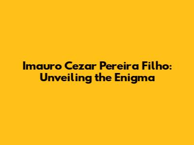 Let's dive into the world of Imauro Cezar Pereira Filho. Who is he, and what makes him tick? We're going to explore everything there is to know about this intriguing individual. Get ready, guys, because we're about to embark on a journey of discovery! This article aims to provide an in-depth look into the life, career, and achievements of Imauro Cezar Pereira Filho, offering readers a comprehensive understanding of his impact and contributions. Whether you're a long-time admirer or just curious to learn more, this exploration promises to be both informative and engaging. We'll delve into his background, professional endeavors, and personal milestones, painting a vivid picture of a multifaceted personality. So, buckle up and prepare to uncover the enigma that is Imauro Cezar Pereira Filho.