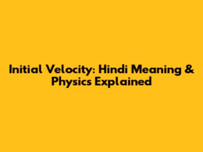 Initial Velocity in Hindi: A Simple Explanation