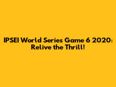 What Made IPSEI World Series Game 6 2020 So Special?