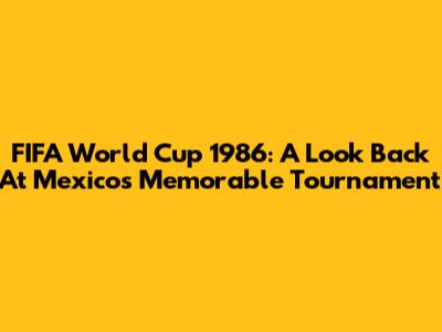 FIFA World Cup 1986: A Look Back At Mexico's Memorable Tournament