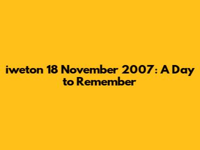 Hey everyone! Let's take a trip down memory lane and revisit iweton 18 November 2007. This date holds a special place, and today, we're diving deep to explore everything that made this day so memorable. So, grab a comfy seat, and let's get started. We will explore the key events and happenings and then look into the impact it had on the community.