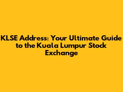 Hey guys! Ever wondered where the heart of Malaysian finance beats? Well, it's at the Kuala Lumpur Stock Exchange (KLSE), now known as Bursa Malaysia. If you're looking to dive into the world of investing, understanding the KLSE address is a great starting point. This guide will walk you through everything you need to know, from its physical location to what happens inside those walls. Let's get started!