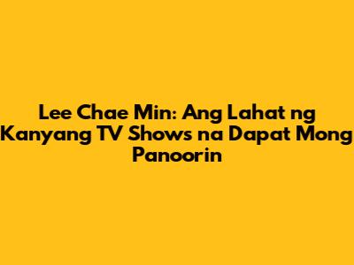 Lee Chae Min: Ang Lahat Ng Kanyang TV Shows Na Dapat Mong Panoorin