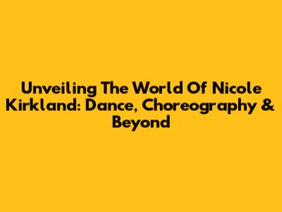 Unveiling The World Of Nicole Kirkland: Dance, Choreography & Beyond