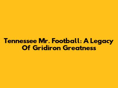Tennessee Mr. Football: A Legacy Of Gridiron Greatness