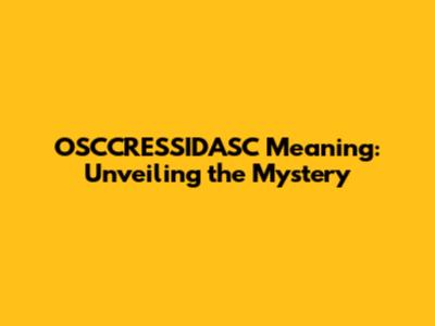OSCCRESSIDASC: Decoding The Enigma