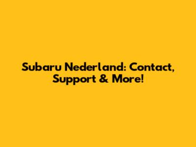 Subaru Nederland: Contact, Support & More!