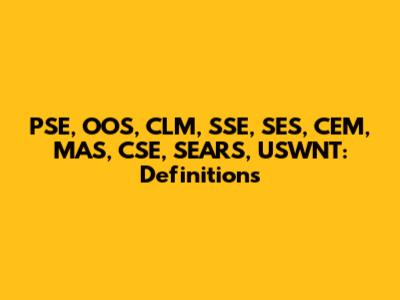PSE, OOS, CLM, SSE, SES, CEM, MAS, CSE, SEARS, USWNT: Definitions