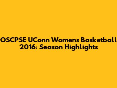 OSCPSE UConn Women's Basketball 2016: Season Highlights