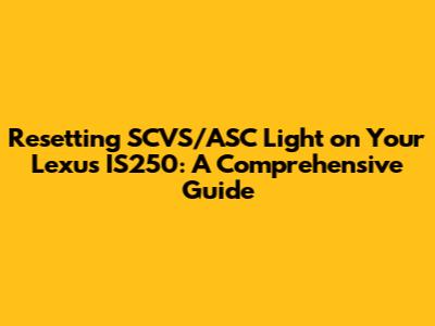 Hey there, Lexus IS250 enthusiasts! Ever found yourself staring at that pesky SCVS/ASC light glowing on your dashboard? It's like a little digital gremlin, right? Well, don't sweat it! It's a common issue, and the good news is, you're not alone. The SCVS/ASC light, which stands for Sport Control Variable Suspension and Automatic Stability Control, respectively, can illuminate for a variety of reasons. This guide is your friendly, easy-to-follow manual on how to tackle this issue. We will delve deep into the causes, how to diagnose the problem, and most importantly, how to reset that light and get your Lexus IS250 back to its prime condition. So, buckle up, grab your tools, and let's get started. We're going to make this process as straightforward and stress-free as possible, ensuring you're back on the road with peace of mind. Let's make sure that those lights are off! We'll cover everything from the basic reasons why the light comes on to the more complex diagnostic steps, and finally, the methods to reset the light. By the end of this guide, you will be equipped with the knowledge and confidence to handle this issue like a pro, and maybe even save some money on those expensive mechanic fees! Remember, maintaining your Lexus IS250 is not just about fixing problems, it's about preserving its performance and your enjoyment of driving. So, let’s get into the specifics. Remember, this is a step-by-step guide, so you won't get lost in the process.