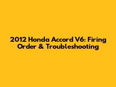 2012 Honda Accord V6: Firing Order & Troubleshooting