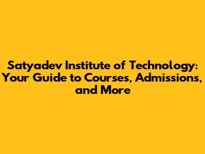 Satyadev Institute Of Technology: Courses, Admissions & More
