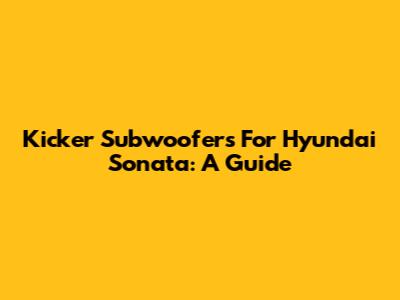 Kicker Subwoofers For Hyundai Sonata: A Guide