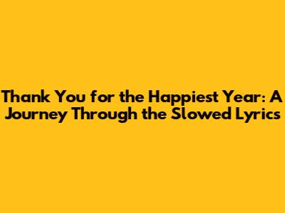 Hey guys! Ever stumbled upon a song that just hits different when it's slowed down? It’s like unlocking a secret level of emotion, right? Today, we’re diving deep into the magic of "Thank You for the Happiest Year of My Life" slowed lyrics. This track, in its original form, is already a feel-good anthem, but when you slow it down, it transforms into something truly special, a mellow, introspective tune that lets you soak in every single word. We're going to break down the lyrics, explore why the slowed version resonates so powerfully, and maybe even get a little teary-eyed together. So grab your favorite cozy beverage, settle in, and let’s get lost in this beautiful song.