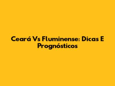 Ceará Vs Fluminense: Dicas E Prognósticos