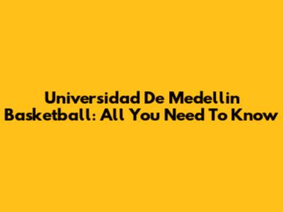 Universidad De Medellin Basketball: All You Need To Know