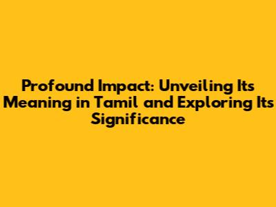 Unveiling Profound Impact: Meaning In Tamil & Its Significance