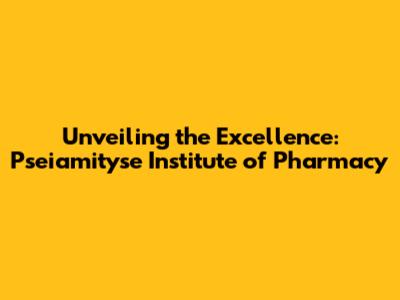 A Deep Dive into Pseiamityse Institute of Pharmacy