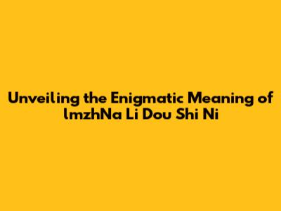 Conclusion: The Enduring Legacy of "lmzhNa Li Dou Shi Ni"