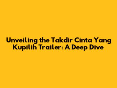 Hey there, film fanatics! Are you ready to get your hearts racing and your minds buzzing? Today, we're diving headfirst into the world of the 'Takdir Cinta Yang Kupilih' trailer. This isn't just a sneak peek; it's a carefully crafted glimpse into a world of love, loss, and the unpredictable twists of fate. We're going to break down the trailer, analyze the key scenes, and explore what this highly anticipated drama has in store for us. So, buckle up, grab your popcorn, and let's unravel the secrets hidden within the trailer!