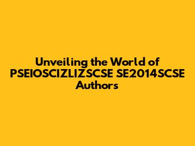 Unveiling The World Of PSEIOSCIZLIZSCSE SE2014SCSE Authors