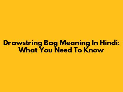 Drawstring Bag Meaning In Hindi: What You Need To Know