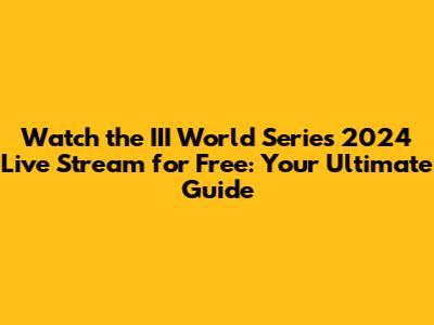 Where to Find the III World Series 2024 Live Stream
